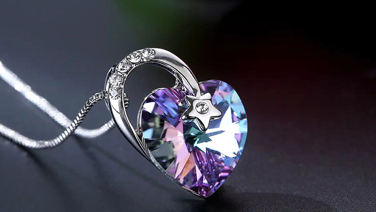 - Crystal necklaces are elegant and stunning, featuring clear quartz or amethyst that adorns the neckline.